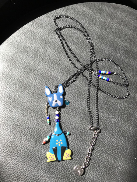 Sautoir Miss bouledogue en émail Lolilota… sur chaîne noire.